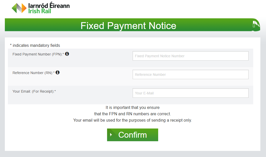 This week, Irish Rail launched the Online Payments facility for Fixed Payment Notices (which are penalties for fare evasion and other infringements).