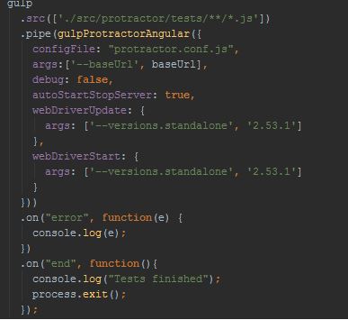 When you configure your gulp task with gulp-angular-protractor it will look similar to this: