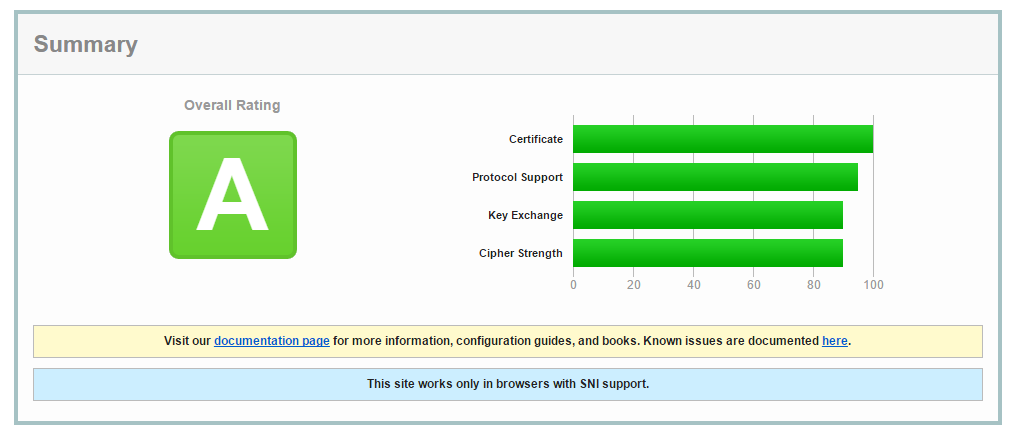Once your server and IIS has come back online you will need to check the rating of your server. Enter the URL of the site or the IP address of the server and have Qualys SSL test your server. You will want to get at least an A rating for server. If you do not get an A rating you will need to review your server's security settings and re-run the SSL Report.