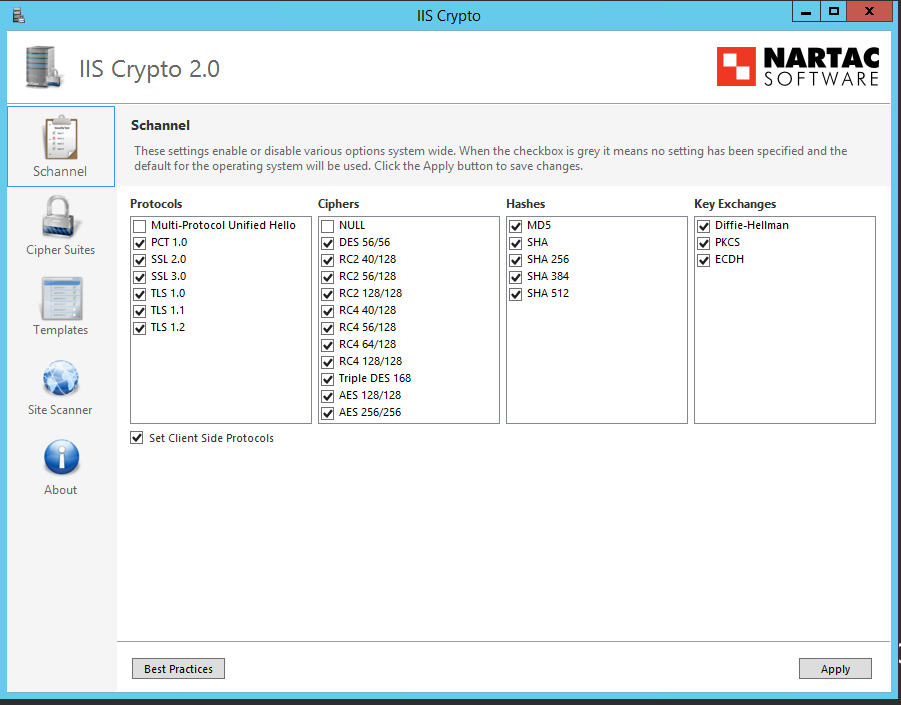 After you clicked "Apply" you will need to reboot your server. IIS Crypto will tell you to do this (it will not reboot the server for you).